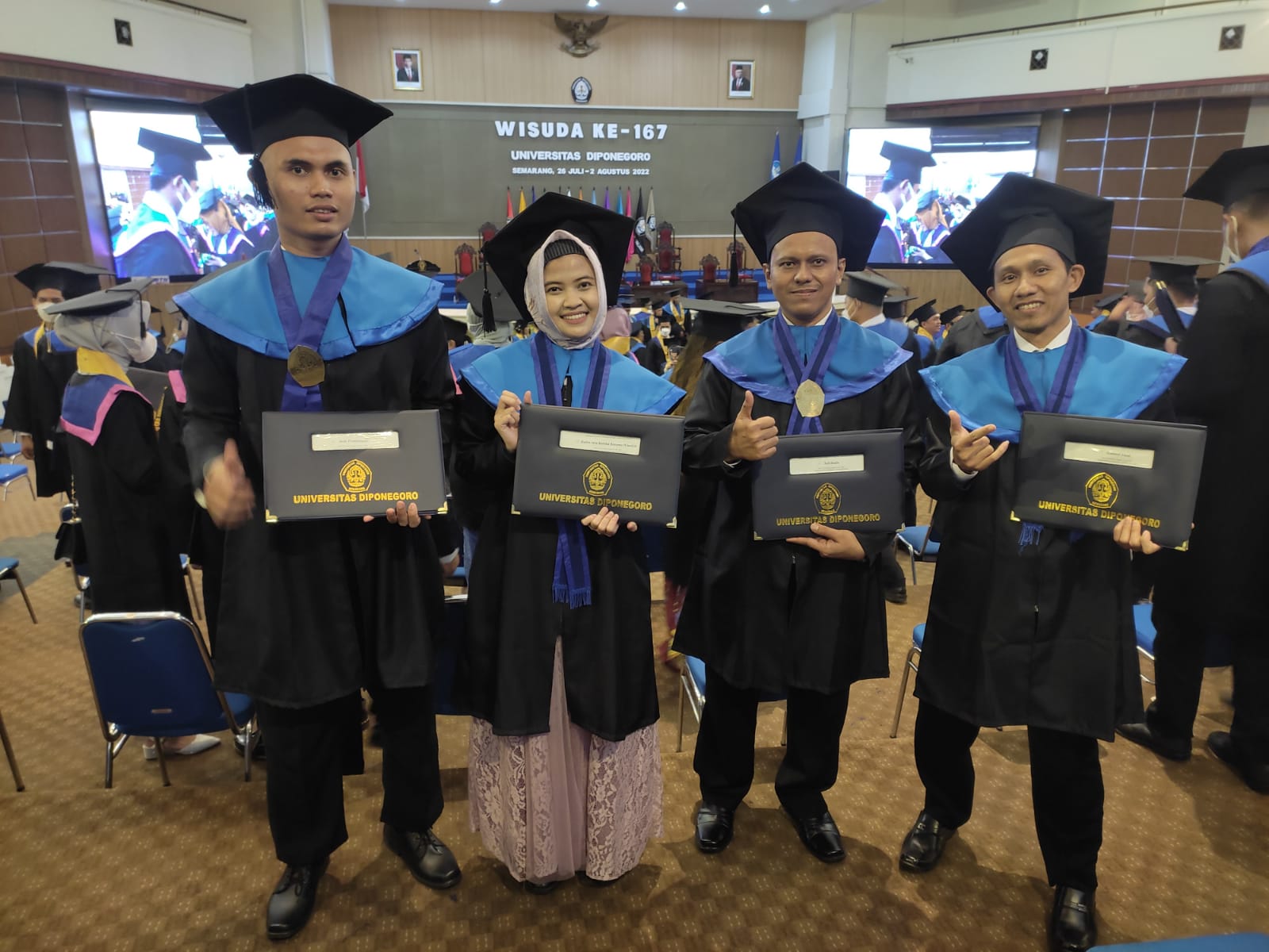 Universitas Diponegoro melaksanakan Upacara Wisuda ke-167 yang dilakukan secara luring pada tanggal 26 Juli – 2 Agustus 2022 bertempat di Gedung Profesor Soedarto SH, Kampus Tembalang. Jumlah lulusan yang mengikuti upacara wisuda ini ada sebanyak 2.705 orang. Para lulusan dari Program Studi Magister Teknik Elektro mengikuti upacara pada tanggal 28 Juli 2022. Terdapat 5 wisudawan dari Program Studi MagisterTeknik Elektro, dengan 1 di antaranya mendapatkan status cumlaude. Lulusan terbaik diraih oleh ERWIN ADRIONO dengan IPK 3.93, dan lulus dalam waktu 2 tahun 10 bulan 25 hari. . Departemen Teknik Elektro mengucapkan selamat bagi para wisudawan, dan mendoakan agar para lulusan mendapatkan kesuksesan di masa depan.